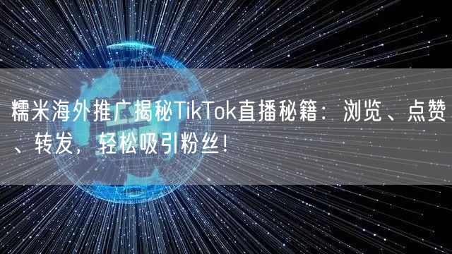 随着TikTok在全球范围内的普及,越来越多的个人和企业开始利用这一平台推广自己的品牌和产品。本文将为你揭示糯米海外推广在TikTok直播中的秘籍,教你如何通过浏览、点赞、转发等操作轻松吸引粉丝,提升你的影响力。