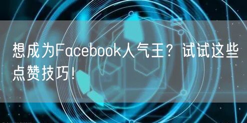 在Facebook这个巨大的社交媒体平台上,你是否渴望成为人气王,受到众人的关注和喜爱?如果你正追求这一目标,那么不妨试试这些实用的点赞技巧,它们将帮助你提升人气,成为众人瞩目的焦点!