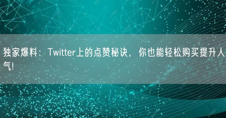 在这个数字化时代,社交媒体已成为人们日常生活的重要组成部分。Twitter作为其中最受欢迎的社交平台之一,吸引了众多用户在此分享和互动。如何在这个平台上获得更多的关注和点赞,成为许多人关注的焦点。本文将为你独家爆料Twitter上的点赞秘诀,让你轻松购买提升人气!