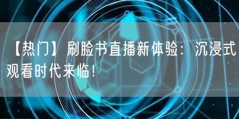 近年来,随着科技的不断发展,刷脸书直播已经成为了一种新兴的社交方式。而现如今,这种直播方式又迎来了全新的体验——沉浸式观看。