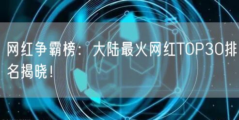 随着互联网的普及和社交媒体的飞速发展,网红已经成为了一种新兴职业,吸引了众多年轻人的关注和追捧。今天,我们将揭晓大陆最火网红的TOP30排名,带你一起了解这些网红的世界。