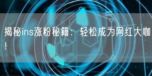 随着社交媒体的普及,越来越多的人开始在社交媒体平台上展现自己的才华和魅力,渴望成为网红大咖。而Instagram作为一个全球知名的社交媒体平台,更是吸引了众多年轻人的关注。那么,如何在Instagram上快速涨粉,成为网红大咖呢?接下来,就让我们一起揭秘ins涨粉秘籍!