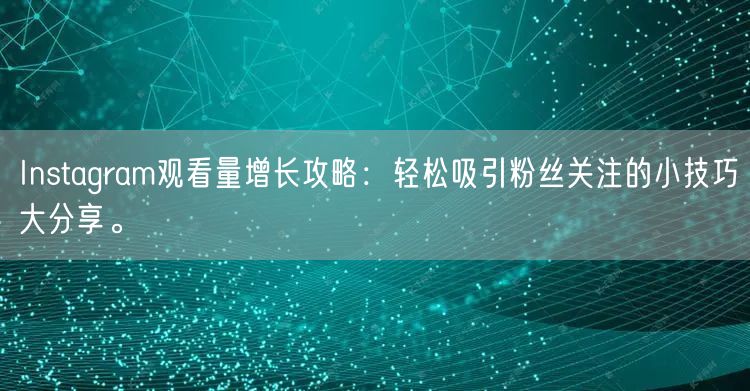 Instagram作为一个流行的社交媒体平台,吸引了众多用户分享生活点滴。如何在这个平台上吸引更多粉丝关注,提高观看量,成为许多用户关注的问题。本文将分享一些轻松吸引粉丝关注的小技巧,帮助你在Instagram上实现观看量的增长。