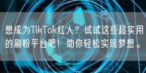 通过本文的介绍,相信大家对如何成为TikTok红人有了更清晰的了解。尝试使用超实用的刷粉平台,结合优质内容和有效的策略,轻松实现TikTok红人的梦想。让我们一起努力,成为TikTok上的耀眼之星!