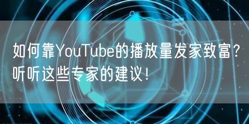 在数字化时代,YouTube已成为全球最受欢迎的社交媒体平台之一。越来越多的人希望通过上传视频,借助YouTube的播放量发家致富。那么,怎样才能在YouTube上获得成功呢?让我们听听专家的建议!