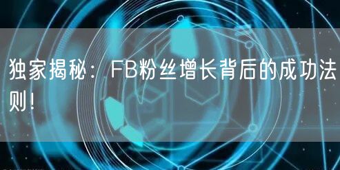 本文独家揭秘了FB粉丝增长背后的成功法则,包括优质内容、精准定位、互动沟通、多渠道推广等方面。通过优化运营策略和增强内容吸引力,你可以在FB上实现粉丝快速增长,为企业在社交媒体上的成功打下坚实的基础。