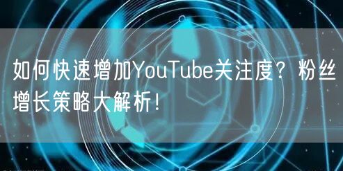 如何快速增加YouTube关注度?粉丝增长策略大解析!