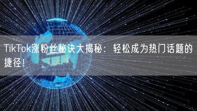 本文为你揭示了TikTok涨粉丝的秘诀,包括打造独特的个人形象、创作优质内容、互动与粉丝、运用技巧提升曝光率、维护良好的社群氛围以及持续学习与改进等方面。希望这些秘诀能帮助你在TikTok上轻松成为热门话题的焦点,吸引更多关注和粉丝,提升你的影响力!