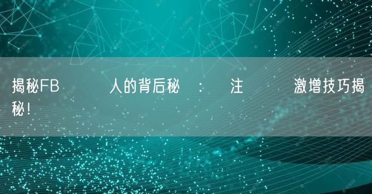 在這個社交媒體盛行的時代,FB專頁紅人似乎是一夜之間崛起的新星,他們的關注與點賴數量激增,令人羨慕。那麼,他們的成功背后究竟有何秘術?今天,就讓我們一起揭秘FB專頁紅人的背后秘術,探索關注與點賴激增的技巧!