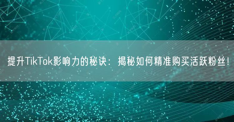 随着TikTok平台的快速发展,越来越多的个人和企业希望通过这一社交媒体平台扩大影响力。其中,购买活跃粉丝成为了一种快速提升影响力的有效途径。本文将为你揭示如何精准购买活跃粉丝,让你的TikTok账号获得更多关注和认可。