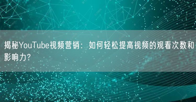 随着互联网的普及,视频营销已成为众多企业和个人推广品牌、产品或服务的重要渠道。YouTube作为全球最大的视频平台之一,拥有庞大的用户群体和广告收入,成为了众多营销人员的首选之地。本文将为您揭秘如何轻松提高YouTube视频的观看次数和影响力。