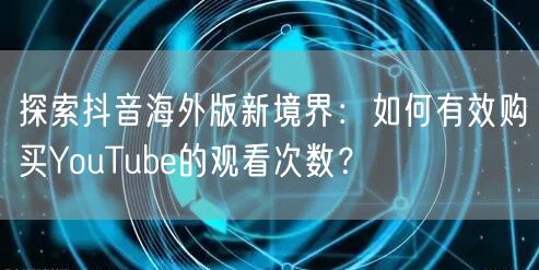 探索抖音海外版新境界:如何有效购买YouTube的观看次数?
