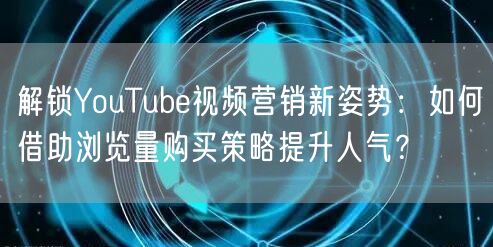 随着互联网的普及和社交媒体的发展,YouTube已经成为了全球最大的视频分享平台之一。越来越多的企业和个人开始利用YouTube视频营销来扩大品牌影响力,吸引潜在客户。然而,如何提升视频人气,让视频在众多竞争者中脱颖而出,成为了许多营销者面临的难题。本文将为你介绍如何通过浏览量购买策略,解锁YouTube视频营销新姿势,提升视频人气。