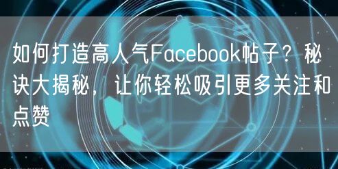 打造高人气Facebook帖子并非易事,本文将为您揭秘一些关键的秘诀和技巧,帮助您轻松吸引更多的关注和点赞。这些秘诀涵盖了内容创作、发布时间、互动方式等方面,掌握这些技巧可以让您在众多帖子中脱颖而出。