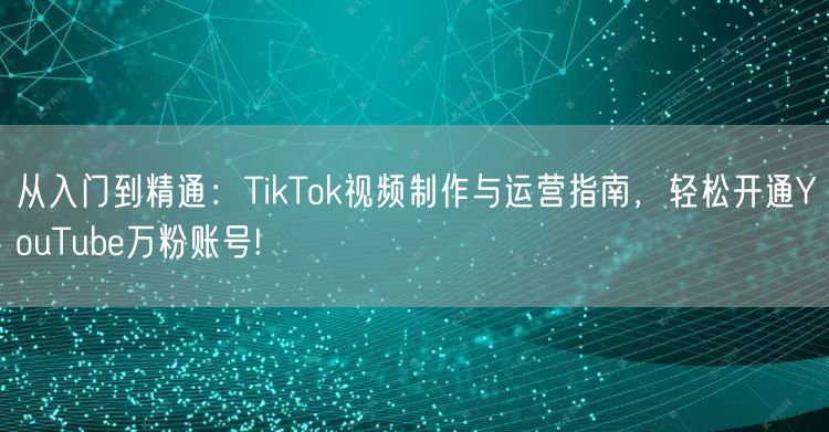 从入门到精通:TikTok视频制作与运营指南,轻松开通YouTube万粉账号!