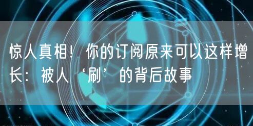 你是否曾经疑惑过,为何有些人的订阅数量能够持续增长,而你无论怎么努力都无法突破?今天,我们将揭开一个惊人的真相——原来你的订阅可以这样增长,背后竟然与“被人刷”有关。