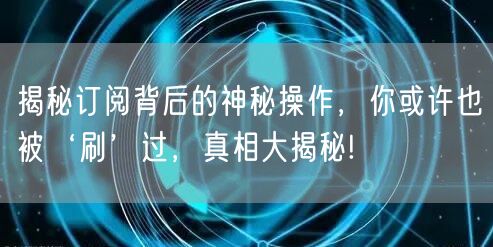 订阅服务的初衷是为了提供更加个性化的内容推荐。然而,随着时间的推移,一些不为人知的手段开始悄然出现。所谓的“刷订阅”,就是一种常见的手段。通过技术手段,增加某个内容的订阅数量,从而达到提升曝光率、吸引更多用户的目的。这不仅影响了用户体验,还可能导致优质内容被埋没。