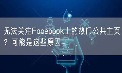 总之,无法关注Facebook上的热门公共主页可能是由多种原因导致的。我们需要仔细排查问题,并采取相应的措施来解决问题。希望以上内容能够帮助到你。