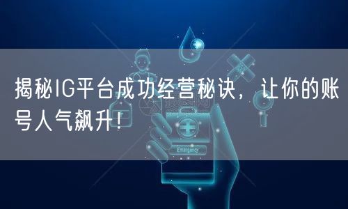 总之,要想在IG平台上成功经营,让账号人气飙升,需要掌握一定的经营秘诀。精准定位、优质内容创作、定期更新、强化互动、合理利用推广手段,这些都是关键。希望以上秘诀能对你有所帮助,祝你在IG平台上取得成功!
