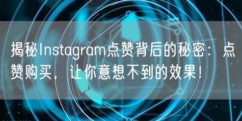 在这个数字化时代,社交媒体平台如Instagram已经成为了人们生活中不可或缺的一部分。我们常常沉浸在浏览各种照片和帖子中,给喜欢的内容点赞已成为一种习惯。然而,你是否曾深入思考过,那些动辄获得成千上万个点赞的照片背后,究竟隐藏着怎样的秘密?今天,让我们一起揭秘Instagram点赞背后的秘密——点赞购买,看看它能带来哪些意想不到的效果!
