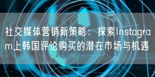 随着数字营销的快速发展,社交媒体已成为品牌宣传的重要渠道。Instagram作为领先的社交媒体平台之一,吸引了众多品牌和营销者的关注。近年来,韩国评论购买在Instagram上逐渐兴起,为品牌带来了新的营销机遇。本文将探索Instagram上韩国评论购买的潜在市场与机遇。
