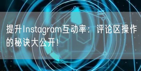 掌握评论区操作的秘诀,轻松提升Instagram互动率。通过实际操作案例分享,让你在Instagram上脱颖而出,吸引更多目标受众。同时,通过点赞、分享和关注等互动行为,让你的内容在社交媒体中传播得更远!