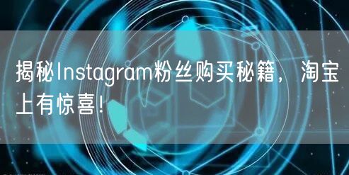 在当今社交媒体风靡的时代,拥有一个庞大的粉丝群体对于个人品牌和企业推广至关重要。Instagram作为一个流行的图片分享平台,吸引了众多用户。本文将为您揭秘购买Instagram粉丝的秘籍,特别是淘宝上隐藏的惊喜,助您快速增加影响力!
