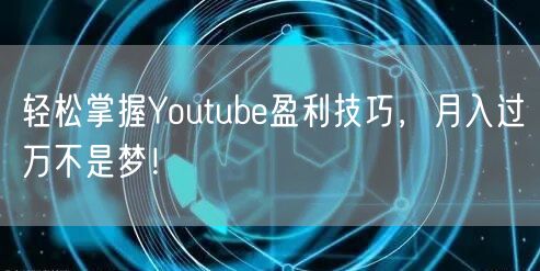 随着互联网的普及和社交媒体的发展,越来越多的人开始在Youtube上分享自己的创意和才华。除了分享自己的兴趣爱好外,如何在Youtube上实现盈利成为了许多人的关注点。本文将为大家分享一些轻松掌握的Youtube盈利技巧,助你实现月入过万的目标!